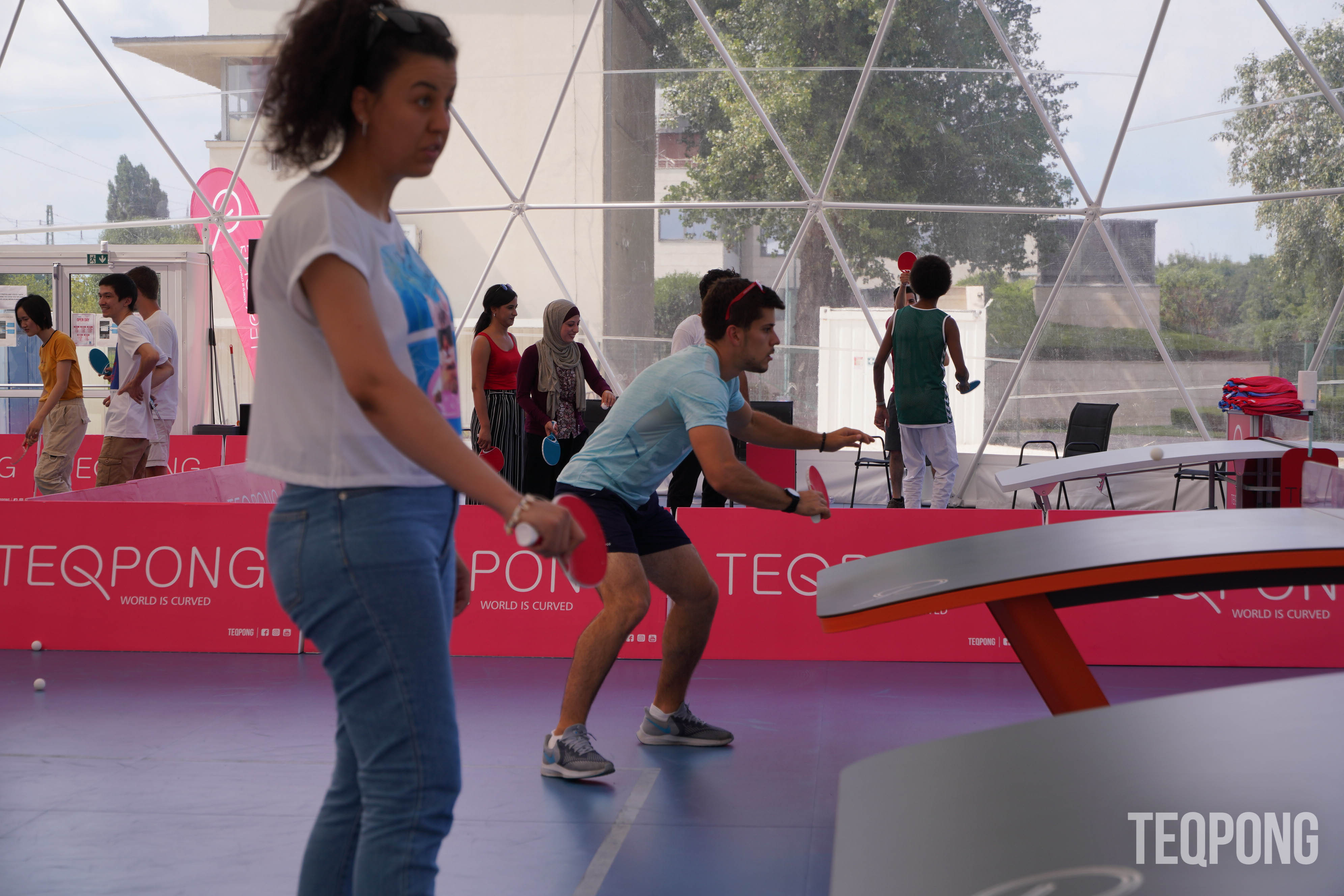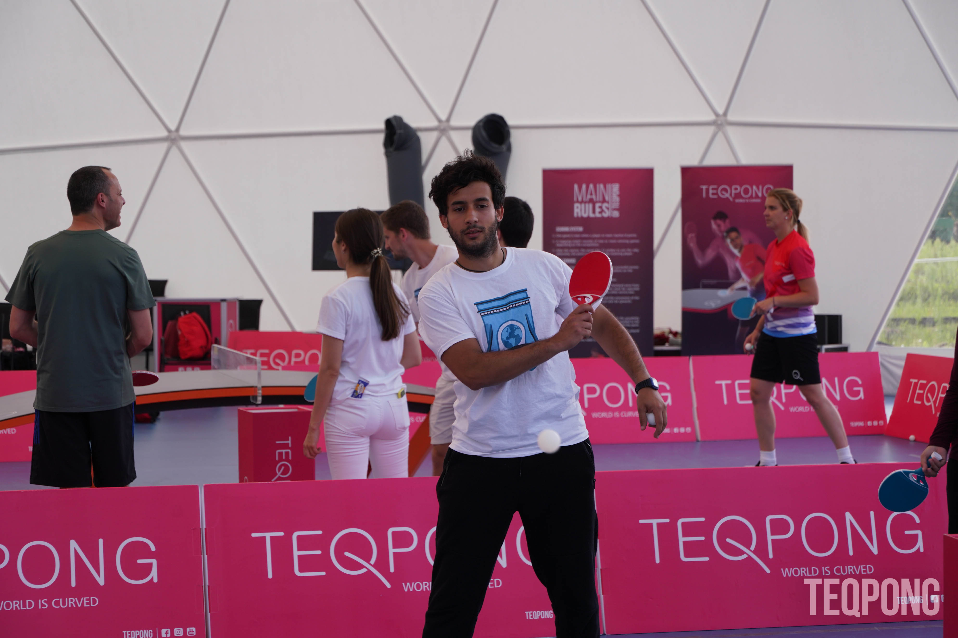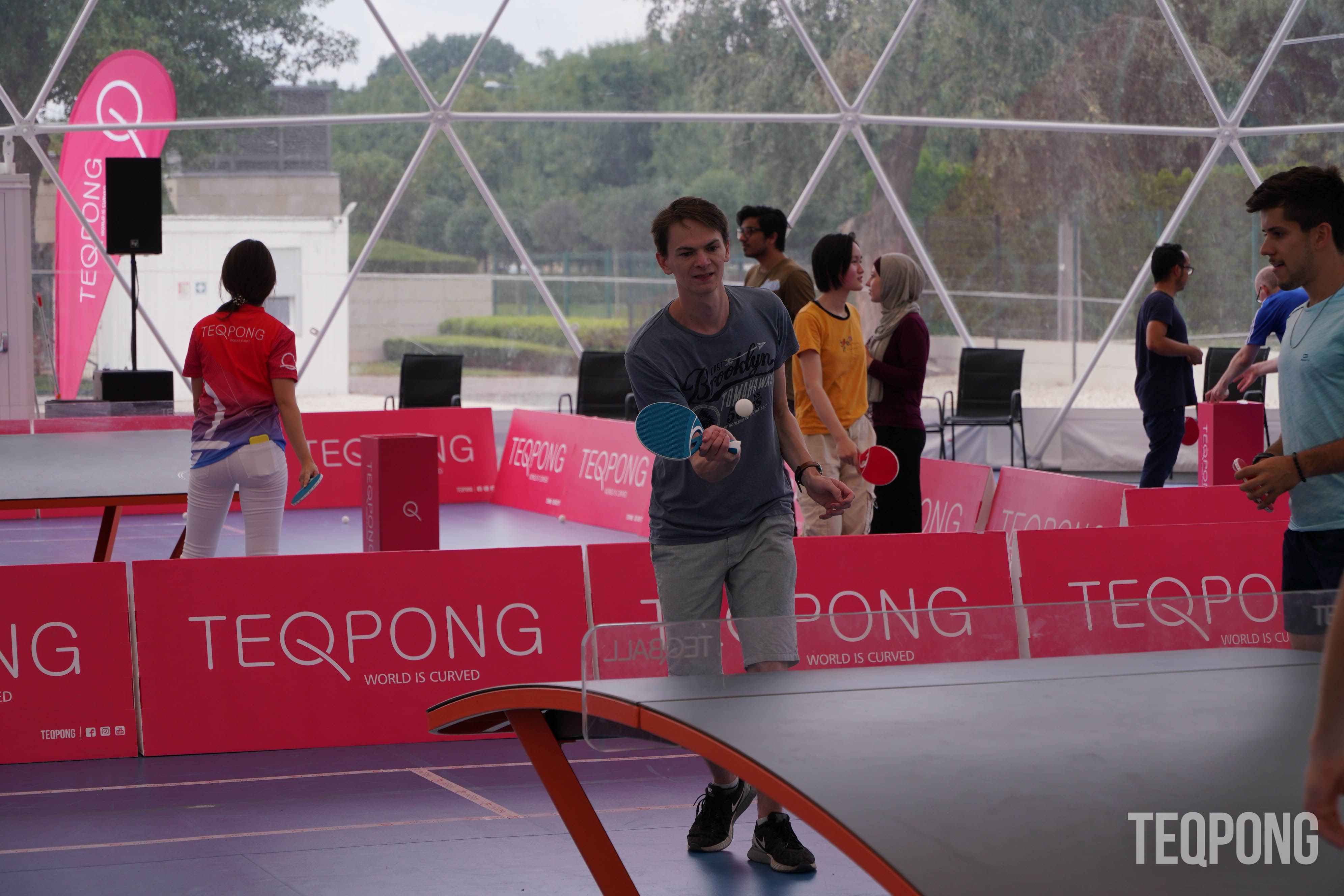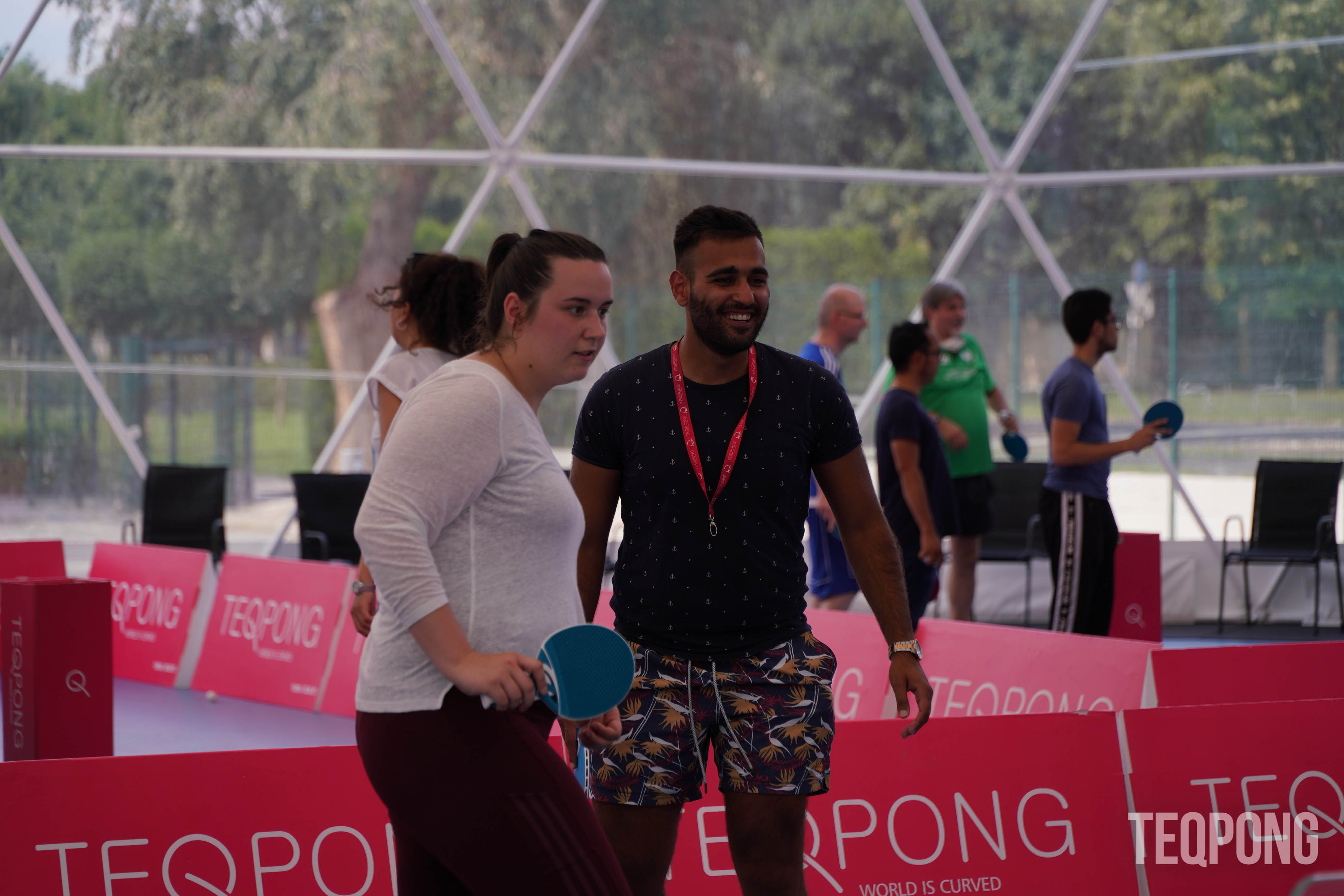 Come & play a new sport - TEQPONG - it is easy to get into and played with rackets on the curved Teq table and most importantly it's FUN!