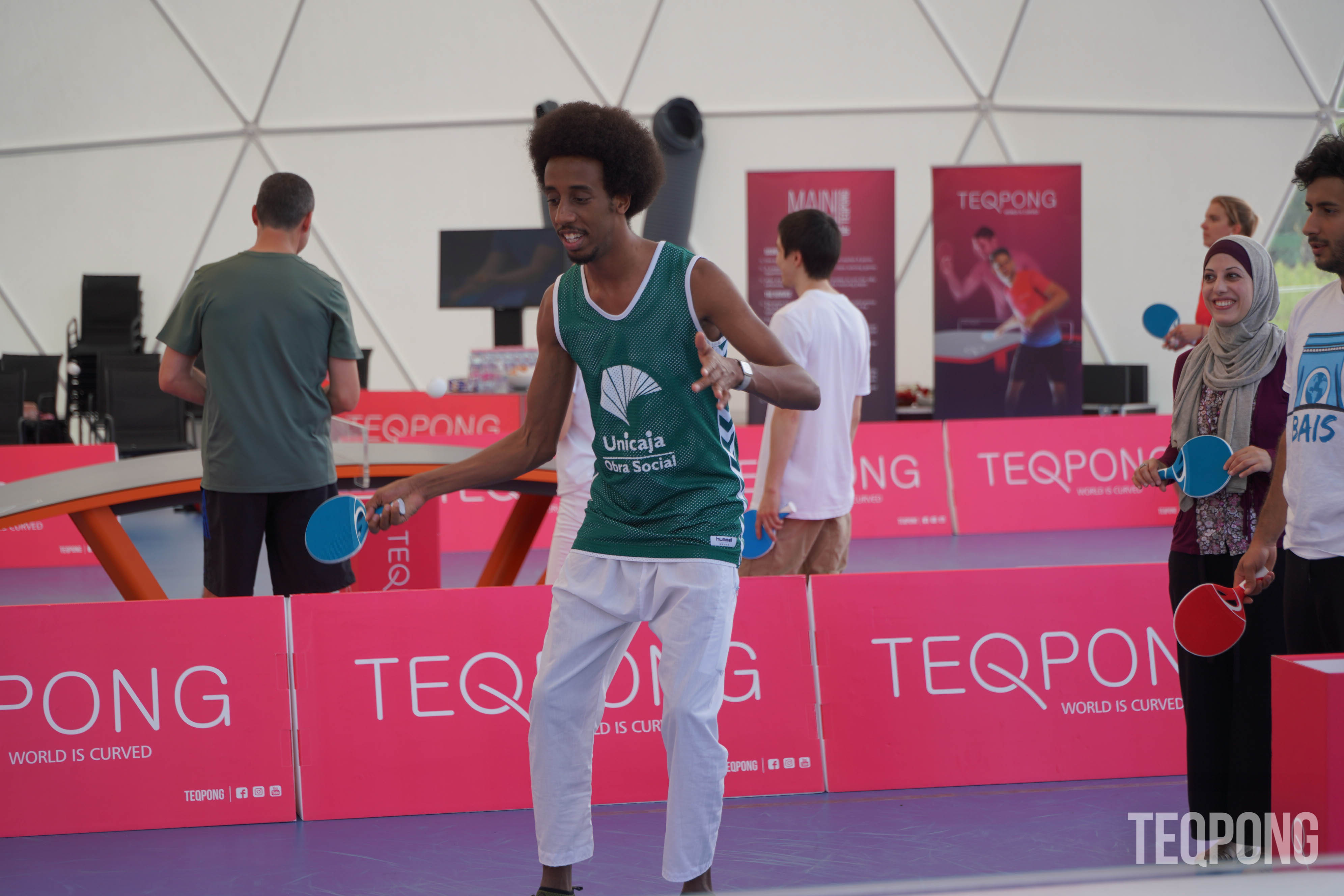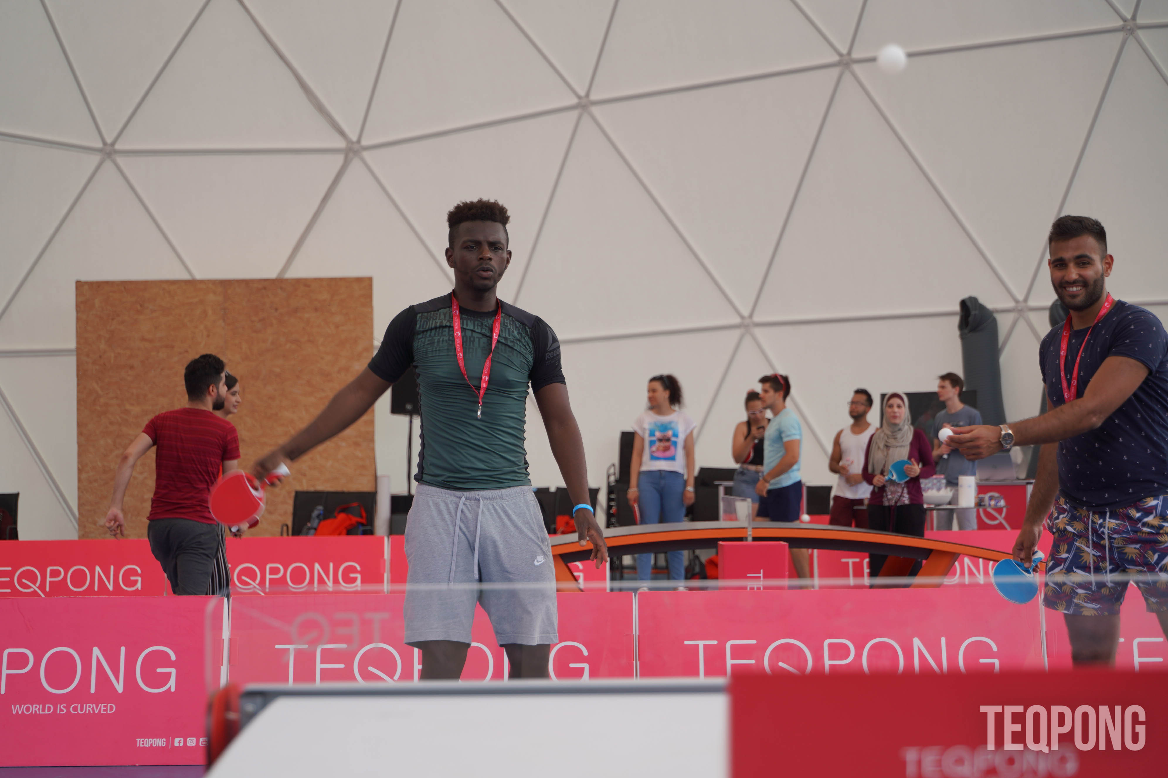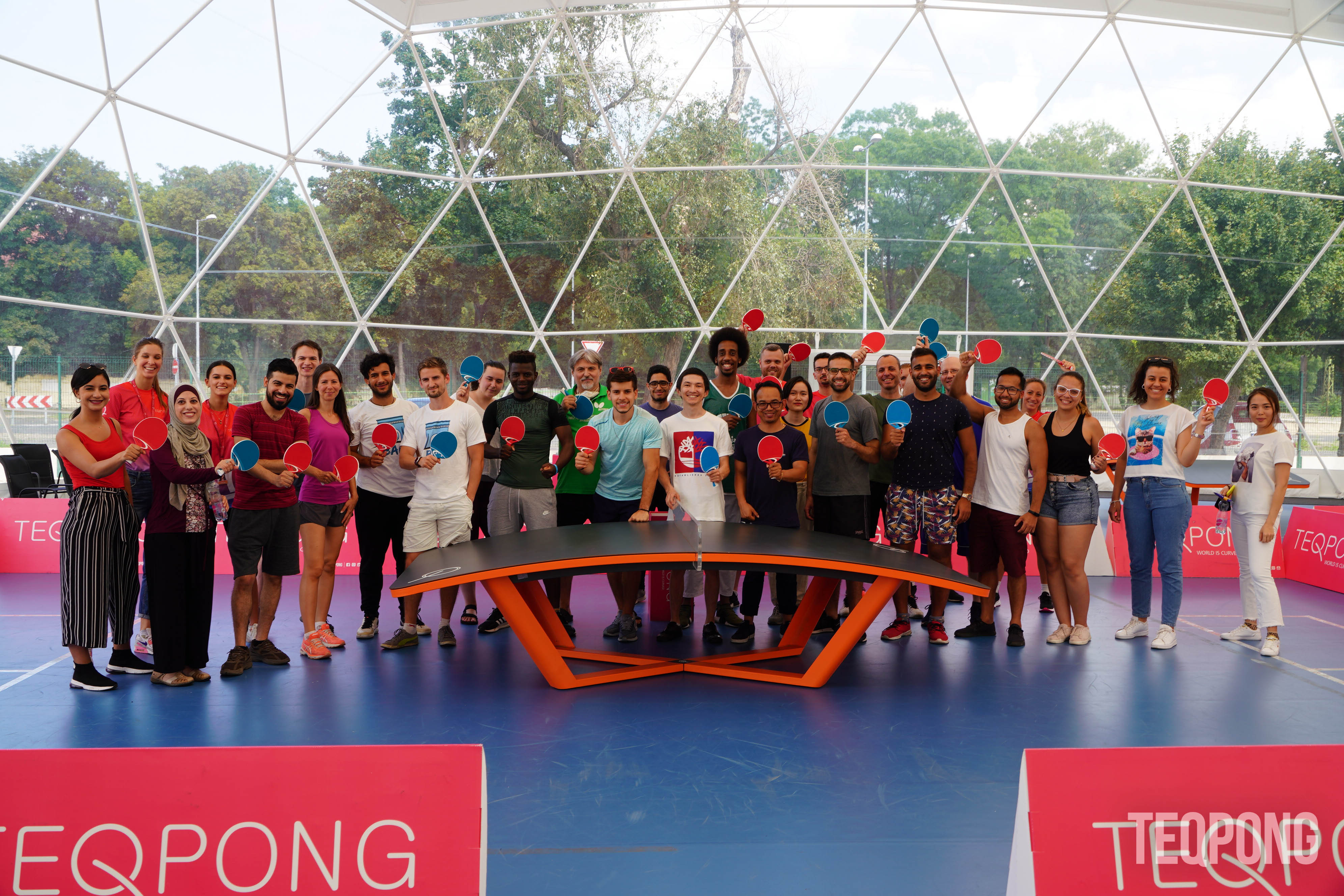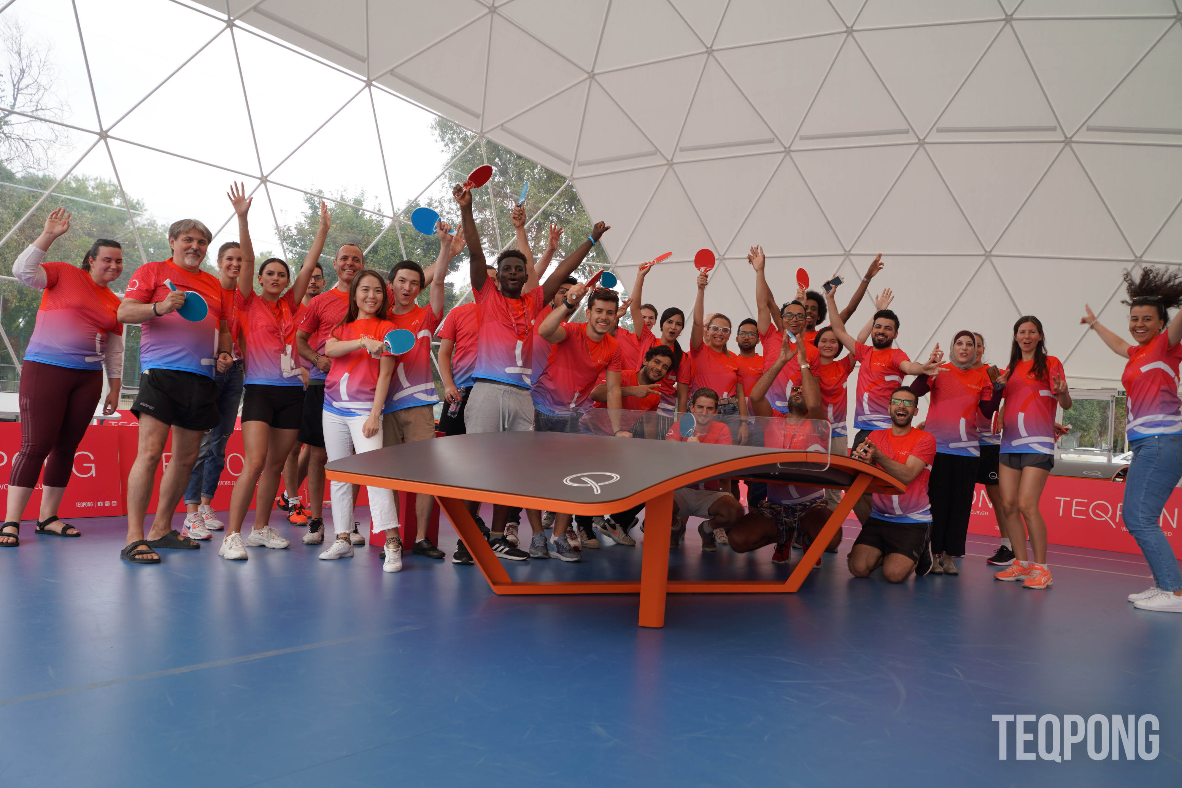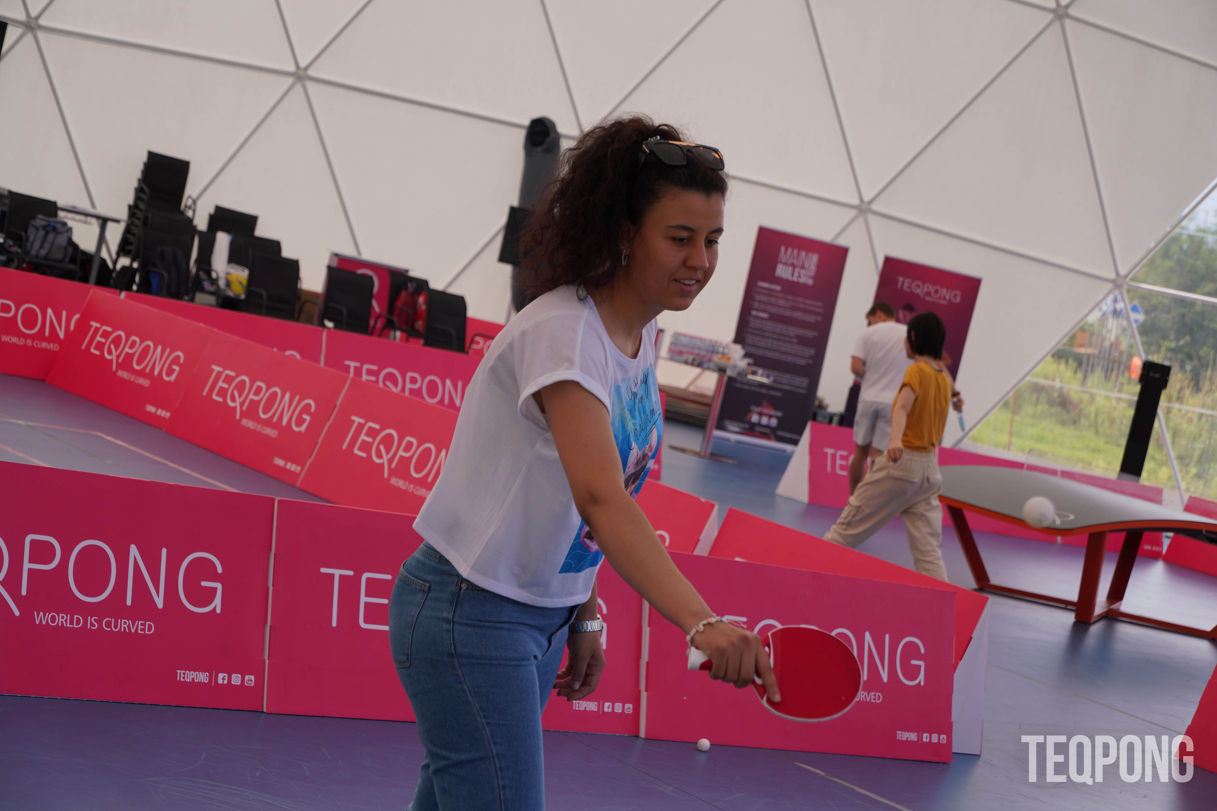 Come & play a new sport - TEQPONG - it is easy to get into and played with rackets on the curved Teq table and most importantly it's FUN!